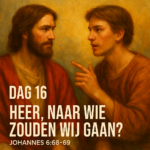 Heer, naar wie zouden wij gaan?Door Patrick MulderIn Niet gecategoriseerd8 september 2025Dag 16 – Woorden die Geest en leven zijn Rate This Lezen: Johannes 6:60–71 (HTB) Accentvers: Johannes 6:68–69 “Heer, naar wie zouden wij gaan? U hebt woorden die eeuwig leven geven. En wij geloven en weten dat U de Heilige van God bent.” Veel volgelingen van Jezus struikelen over Zijn onderwijs. Hij had gezegd dat Hij het Brood des Levens is en dat wie Zijn vlees eet en Zijn bloed drinkt eeuwig leven heeft. Voor velen was dit te moeilijk, te schokkend. “Dit is hard onderwijs, wie kan hiernaar ...Geen reacties